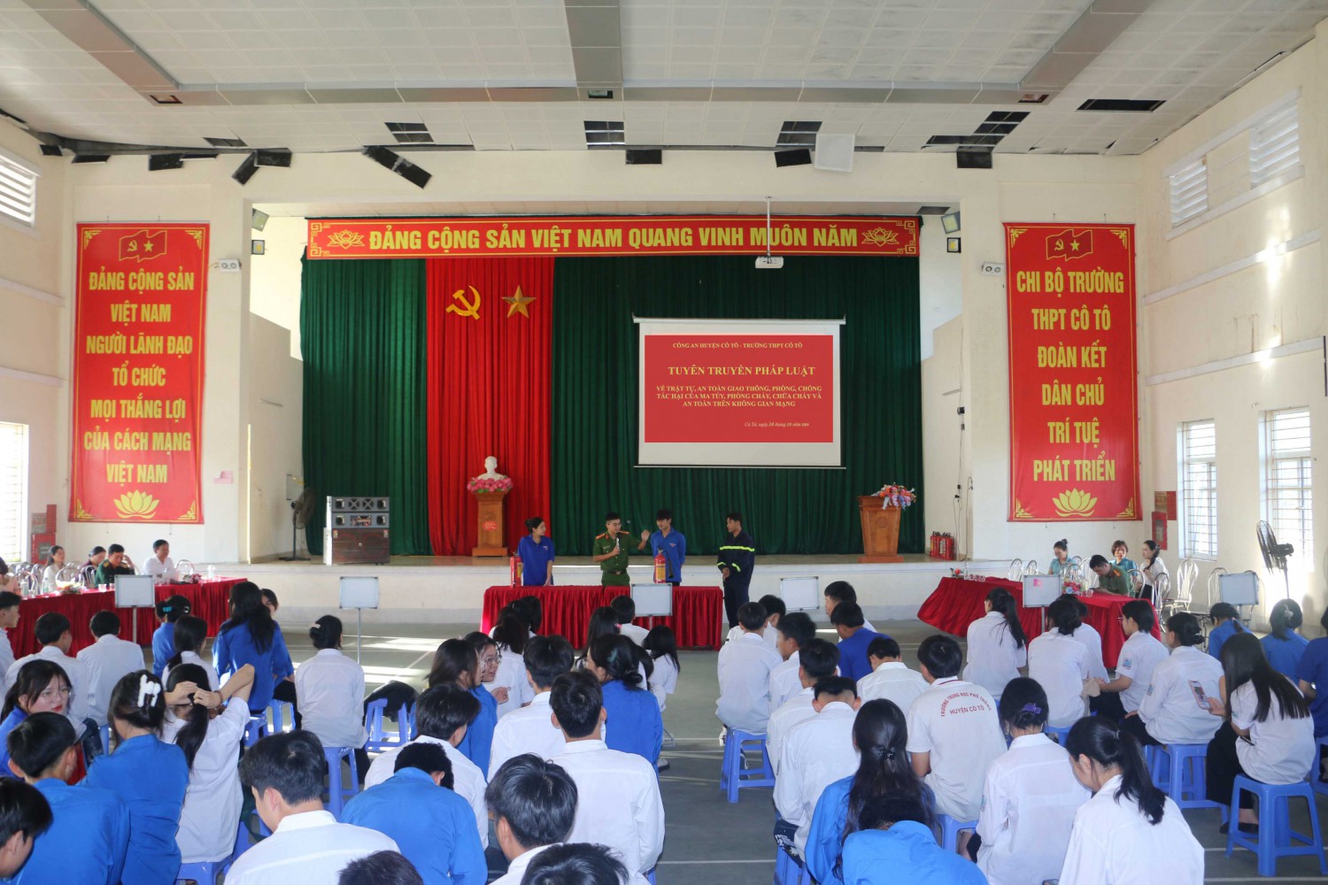 Ngày 24/10, Công an huyện Cô Tô phối hợp với trường THPT Cô Tô tổ chức Hội nghị Tuyên truyền phổ biến pháp luật về trật tự, ATGT; phòng chống tác hại của Ma túy; phòng cháy chữa cháy và an toàn trên không gian mạng cho toàn thể cán bộ giáo viên, nhân viên và học sinh trong nhà trường.